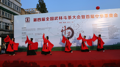 2014年10月25日,国内茶友翘首以待的第四届全国武林斗茶大会暨首届中华茶奥会在杭州凯旋路70号(茶都名园)隆重举行。来自国内22个省市、地区及德国、斯里兰卡近456名选手参与竞赛,来自全国各地的80位专家与武林斗茶竞赛裁判员参与执裁与仲裁,与会嘉宾和观摩者达数千人次。大赛有仿宋斗茶、斗沏泡茶能力、斗鉴别茶汤能力、斗茶品、斗茶汤对茶样五个大类,共十一个赛区。经激烈的角逐,产生了12位金奖得主,28位银奖得主,48位优秀奖得主及10位侍茶优胜奖获得者。