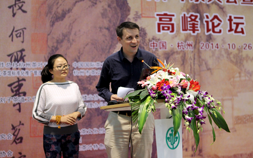 获鉴茶汤等级金奖的德国艾伦德先生携夫人在高峰论坛演讲
