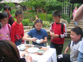 前来感受茶文化氛围的小朋友们品饮空山新雨